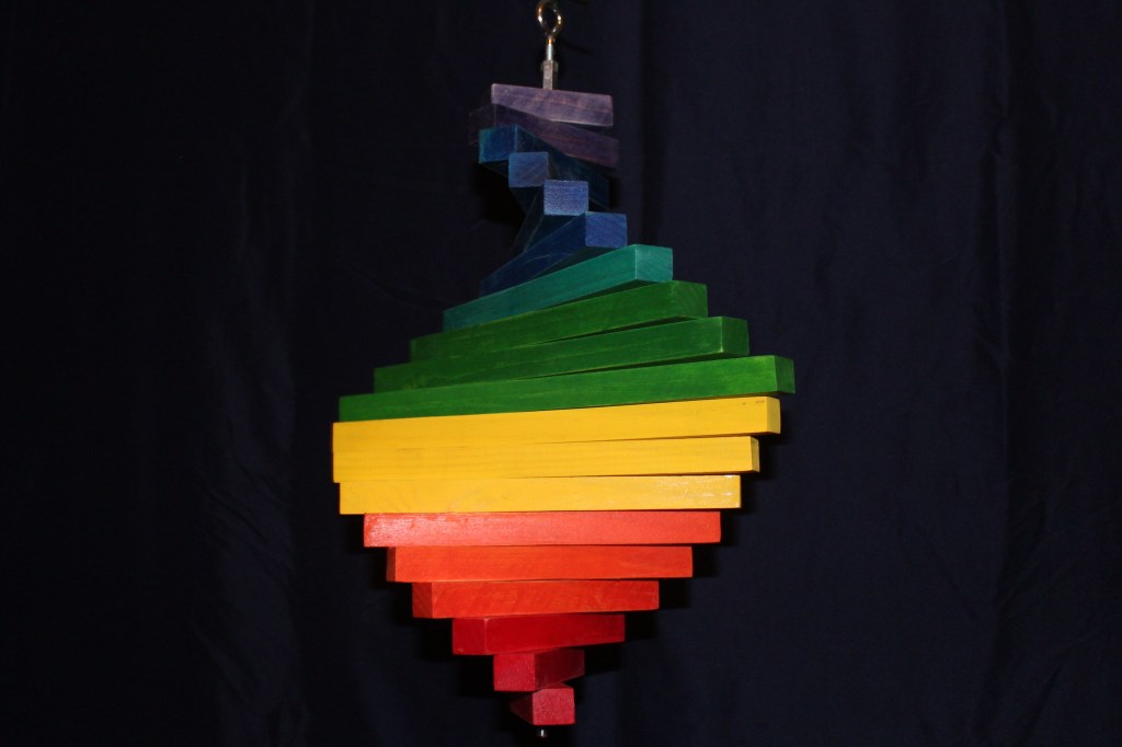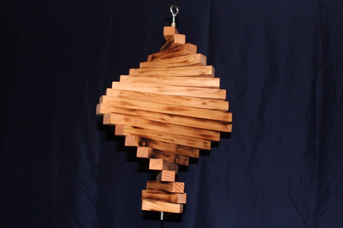 These whirligigs spin lazily in the wind and look great hanging off your porch. They can be made in any color and many folks like to order them in their favorite team colors. The ones displayed here are 16″ tall, but they can be made in any size for custom orders. The 16″ standard whirligigs sell for $30 + tax and $10 shipping. Let me know what colors or stain you would prefer and I can make one custom for you.